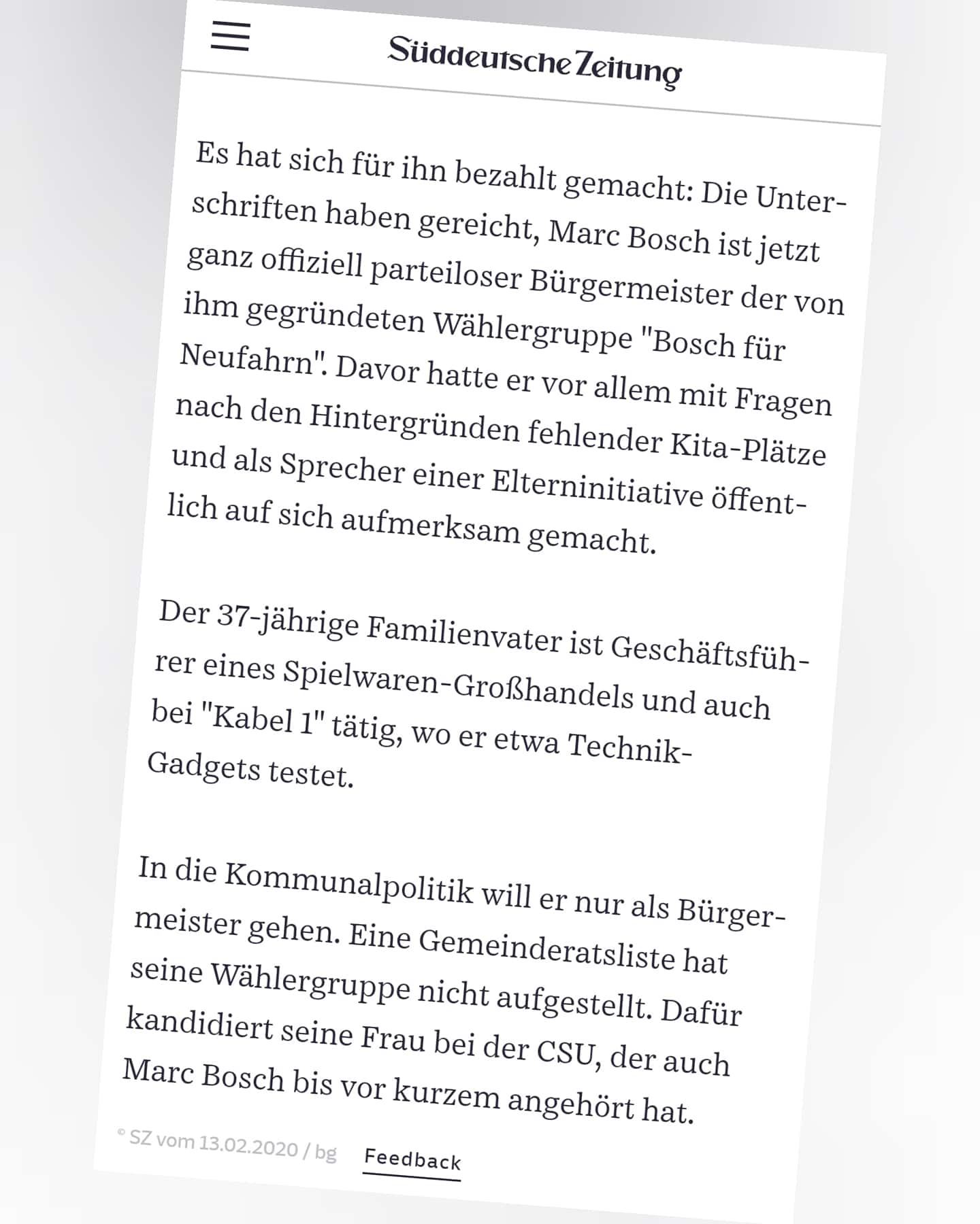 Marc Bosch wird nominiert (21.11.2019), Süddeutsche Zeitung